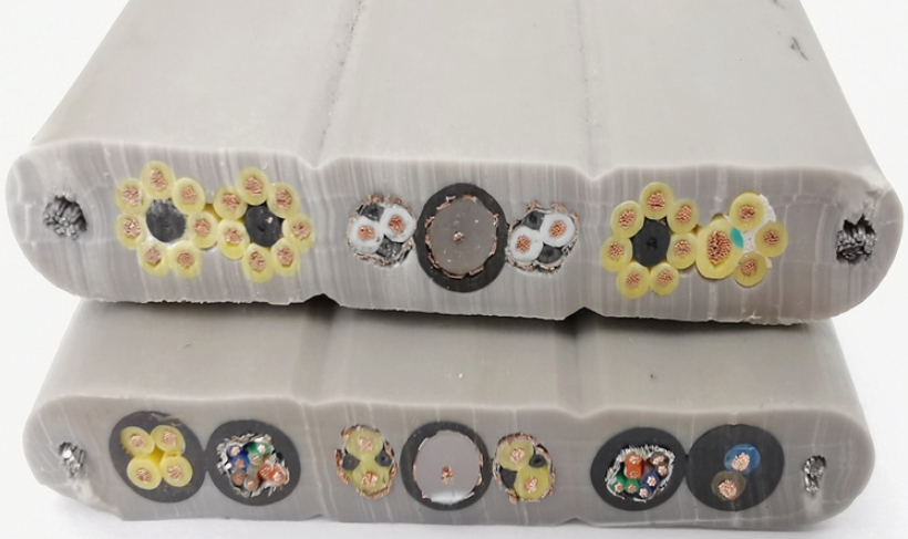 加鋼絲扁電纜YVFBG適用于交流額定電壓450/750V及以下移動設備機上電器儀表連接線或信號傳輸,扁電纜兩邊加鋼絲承拉,可根據用戶需要在電纜設計中加入光纖作為通信之用,電纜具有阻燃耐熱、耐寒、防油、耐腐蝕、柔軟、耐磨、抗拉等特性,電纜廣泛用于冶金、電力、石油化工、礦山、船舶工業、港口及移動設備制造等行業。